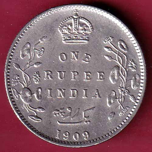 British India 1909 Edward Vii king & Emperor One Rupee Silver coin :- VA481
