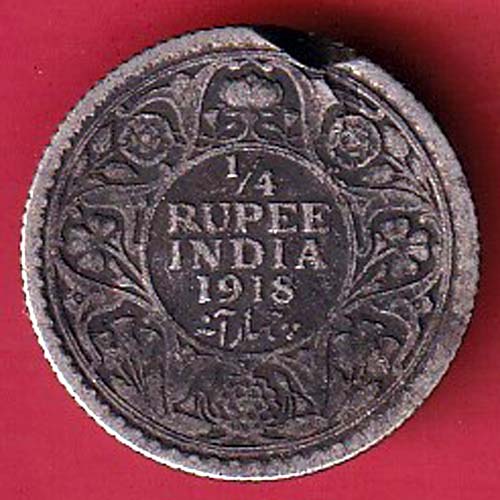 British India 1918 George v 1/4 Rupee silver coin – s6207