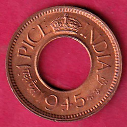 British india king bombay mint george vi 1945 one pice beautiful copper Coin:- S4341