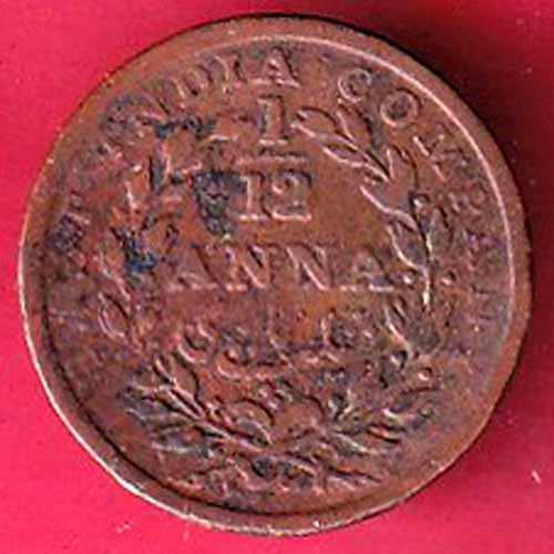 east india company 1835 1/12 anna copper coin:- S3002