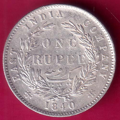 EAST INDIA COMPANY 1840 DIVIDED LEGEND VICTORIA QUEEN ONE RUPEE SILVER COIN :- SA424