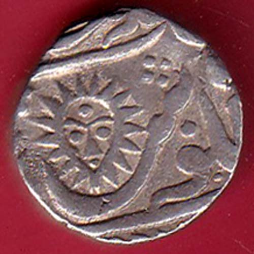 INDORE STATE SUN FACE INO SHAH ALAM II MALHAR RAO HALF RUPEE COIN- VA3876