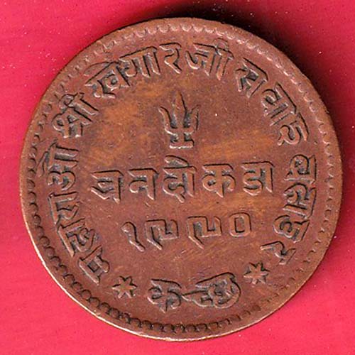 Kutch State 1934 / 1990 Shree Khengarji Three Dokdo copper coin- S7142
