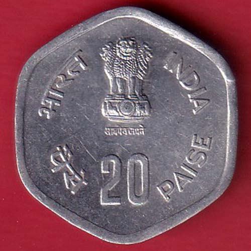 Republic India 1983 Hyderabad Mint Fisheries FAO 20 Paisa Coin – sa2362
