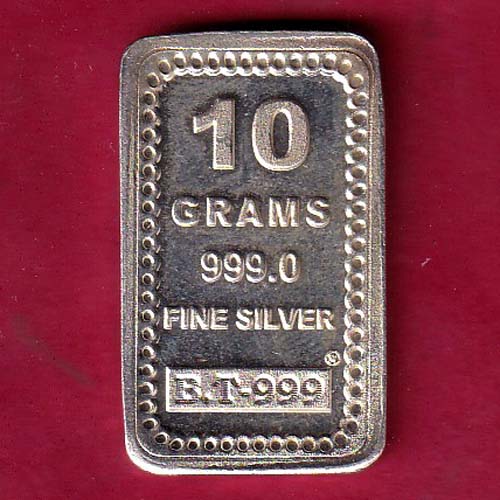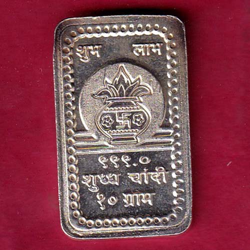 SILVER BAR: W –9.96 gm BHARAT TRADARS KALASH & SWASTIKA –S4490